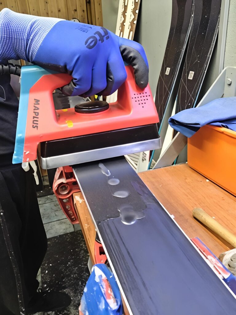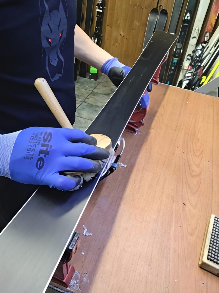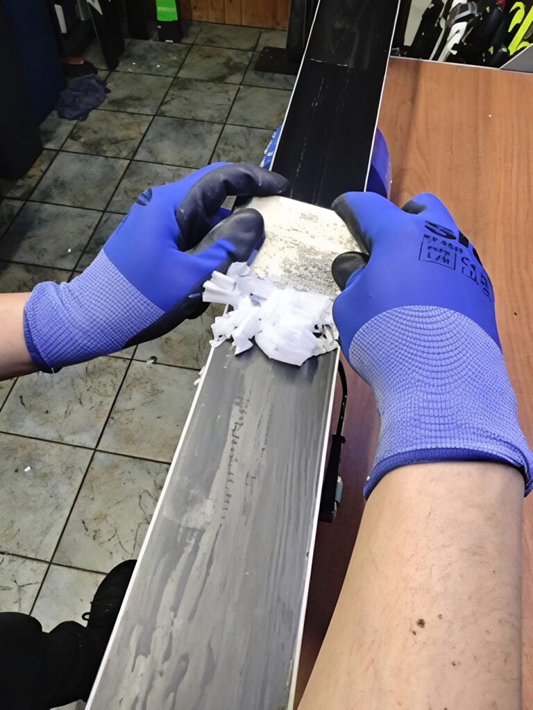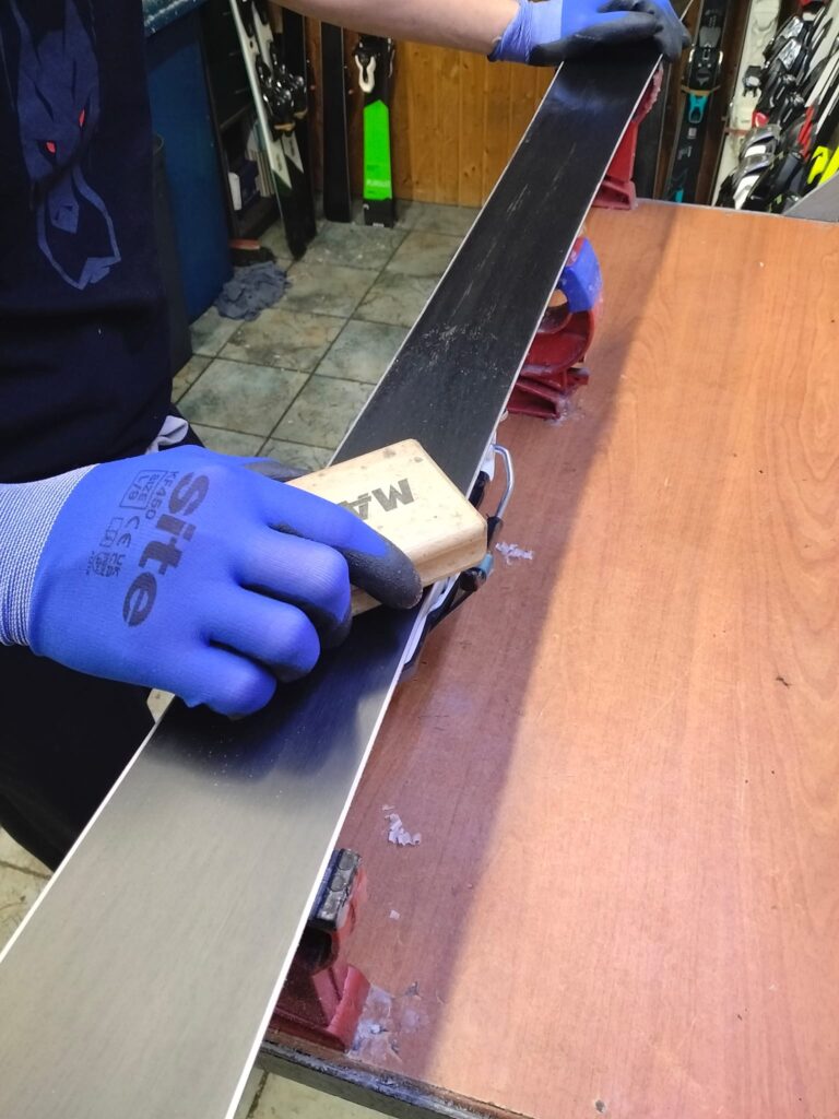 Indywidualne traktowanie każdej pary nart : Każda narta zużywa się inaczej, ręcznie można poprawić miejsca bardziej suche, wyrównać ślizg. Poprawia na lepsze osiągi na stoku.